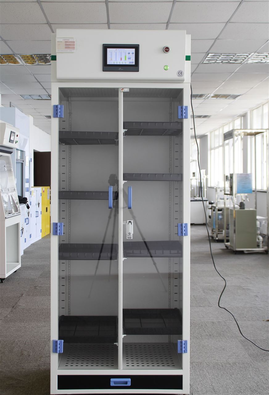 凈氣型儲藥柜頂部配備風機和過濾裝置,風機運轉(zhuǎn)使得柜內(nèi)形成負壓,空氣從進氣口進入,有毒氣體和粉塵的空氣將被活性炭過濾器和高效粒子過濾器過濾,經(jīng)過過濾后潔凈的空氣返回室內(nèi)。凈氣型儲藥柜用來保護實驗室人員在存儲化學品時帶來的吸入危害,同時能夠24小時不間斷的對室內(nèi)空氣進行循環(huán)過濾。
